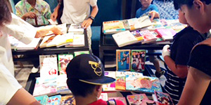 文書委員会と事業委員会が協力して、寄贈本の募集と管理、そしてイベント会場で直接子どもたちに本を手渡しています。