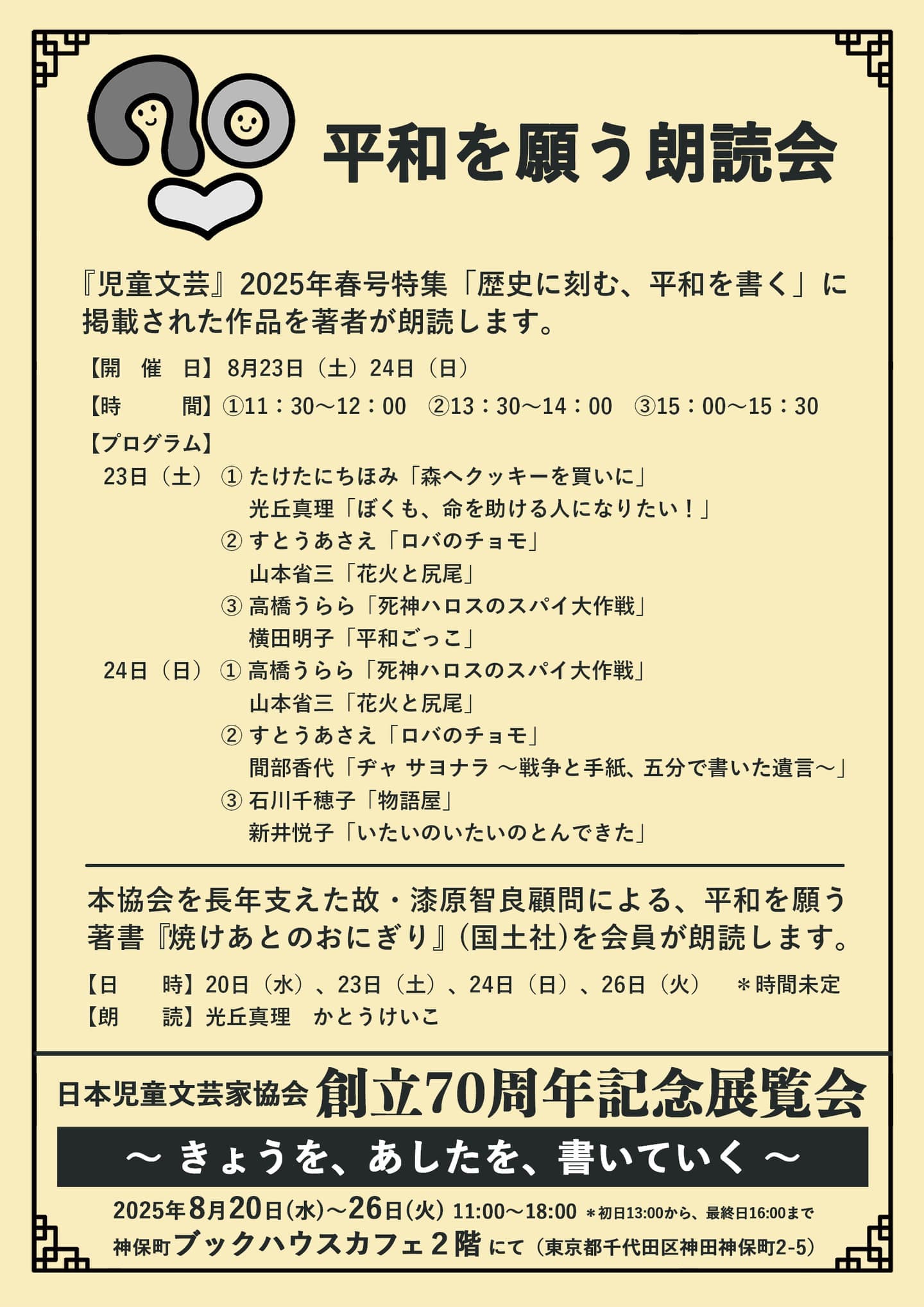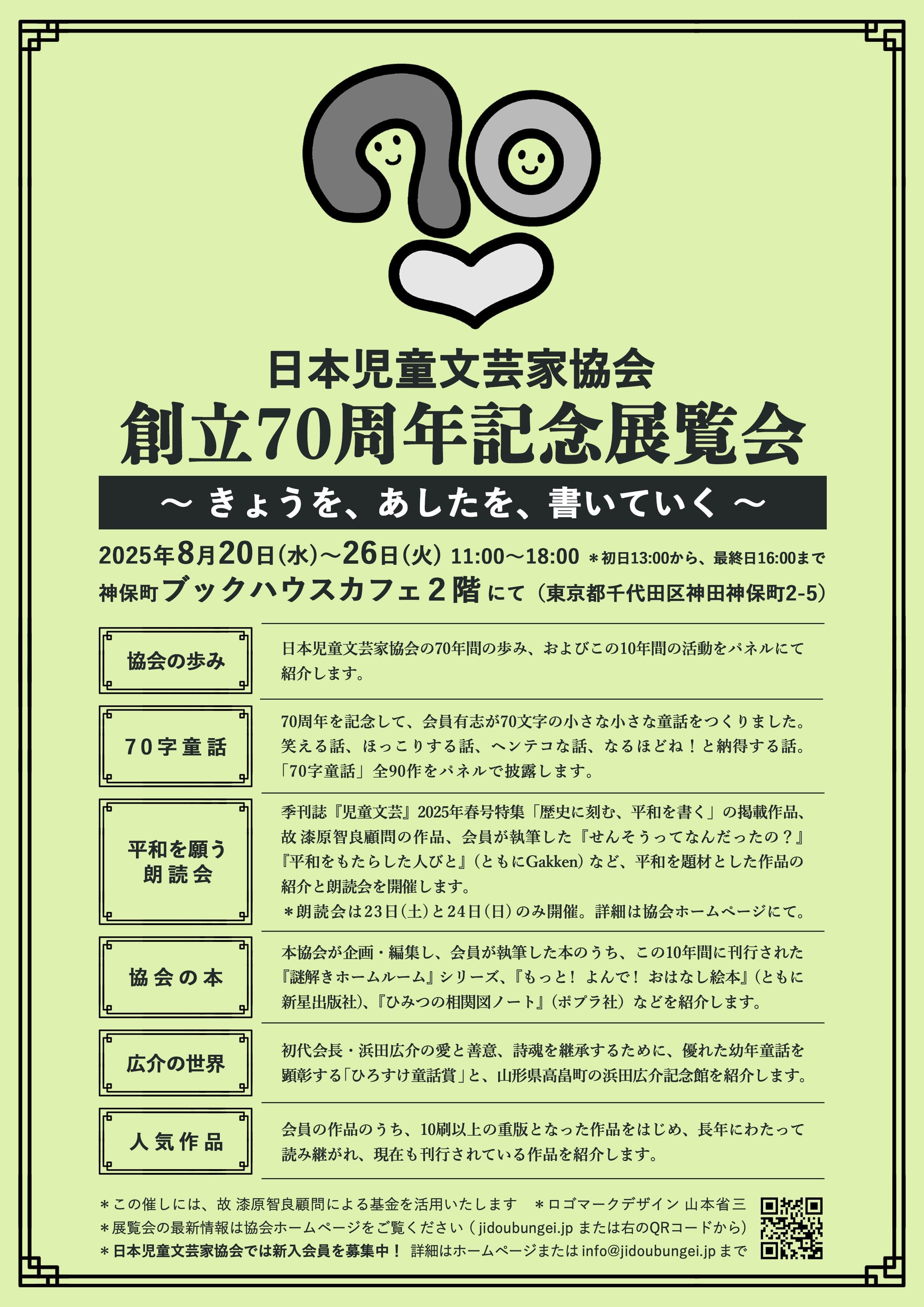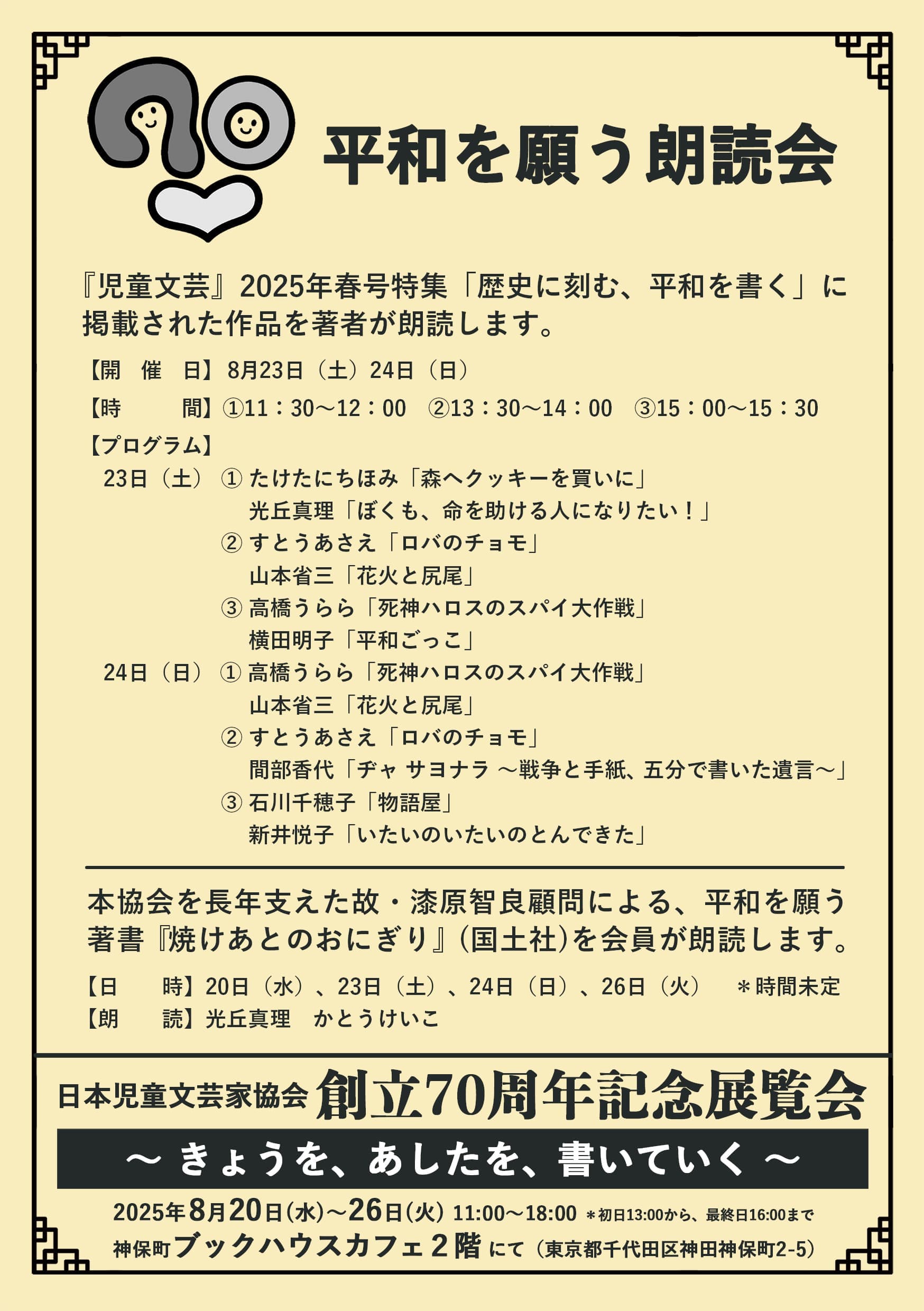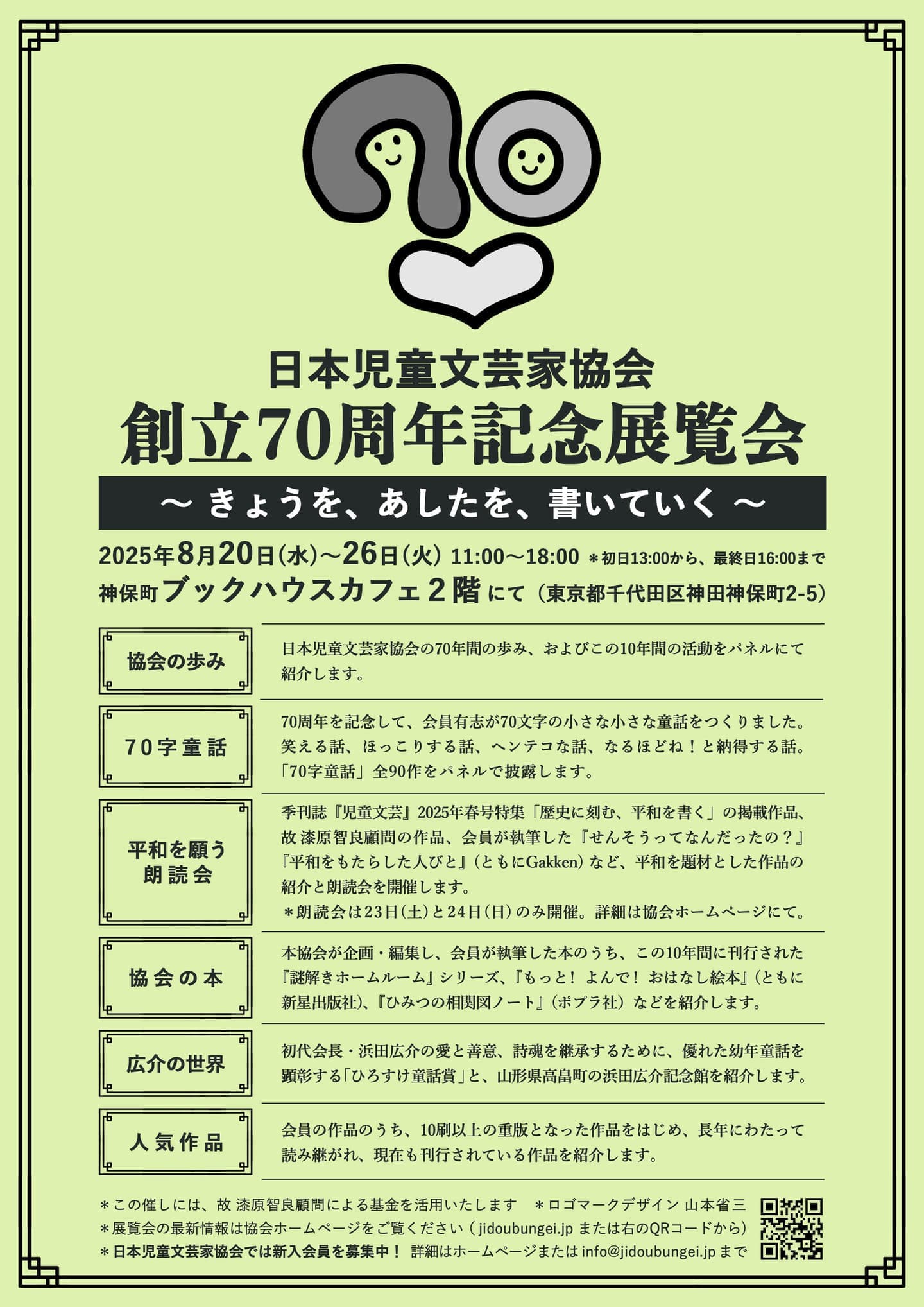2025年8月20日(水)〜26日(火)に、神保町ブックハウスカフェにて「創立70周年記念展覧会〜きょうを、あしたを、書いていく〜」を開催いたしました。