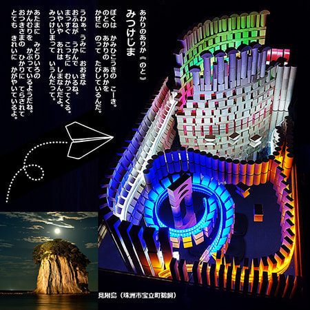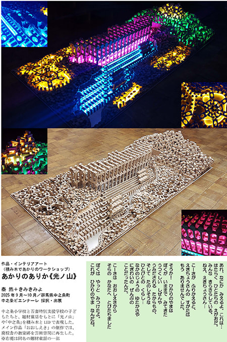 造形作家 泰 然+童話作家 きみきみよ+中之条小学校・吾妻特別支援学校で、エデュケーション プログラム(インテリア アート)あかりのありか《光ノ山》に取り組みました。作品と同名の題材童話「あかりのありか《光ノ山》」は、紙飛行機のこーきが、光ノ山の本当の意味を探して中之条を旅するお話です。