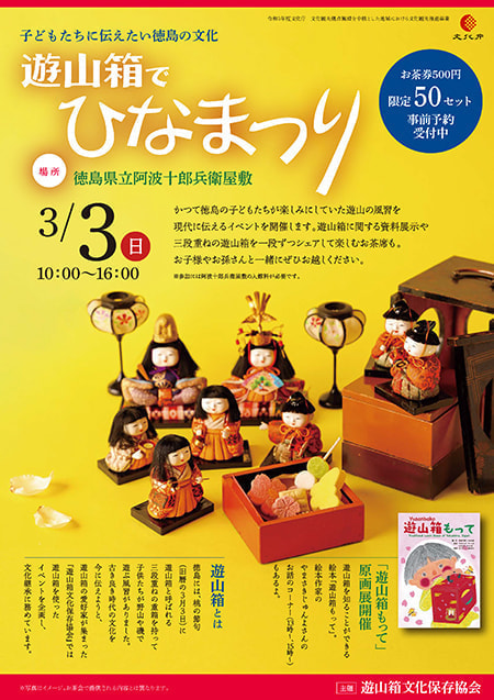 徳島県では、4月3日は遊山の日になります。昔、伝統工芸品のお弁当箱「遊山箱」にまきずしやあわういろなどを詰めて、遊山箱をもって遊山へ出かけていました。