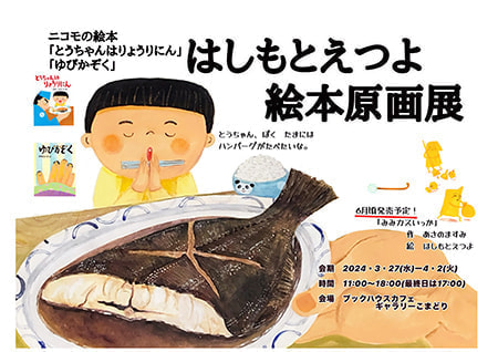 かわいいえほんやさん、にこにこ書店さんで原画を見ていただけるなんて、幸せです。よろしかったら、お寄りください。