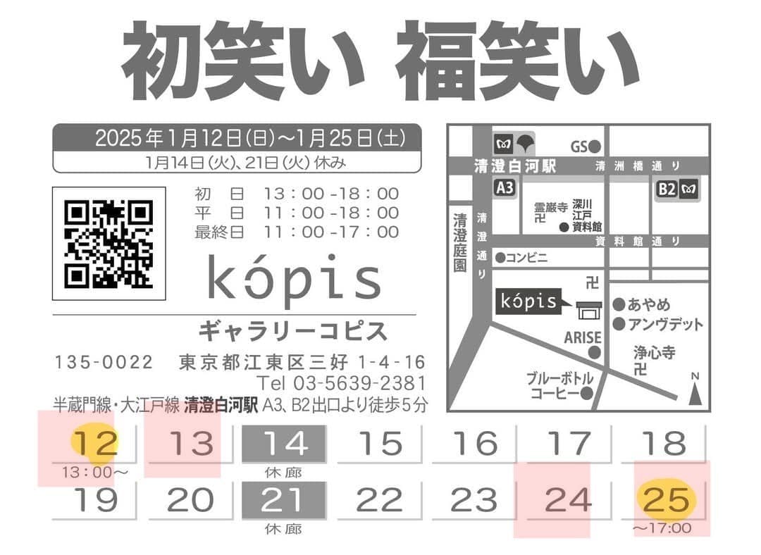 1月25日(火)、30日(日)、2月1日(火)休廊