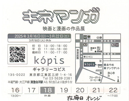 深川のギャラリーコピスにて、昨年に引き続いて松尾芭蕉のマンガをのびのび描かせていただき、展示しています。江戸の情緒の残る深川で、アートな江戸を満喫してみませんか。