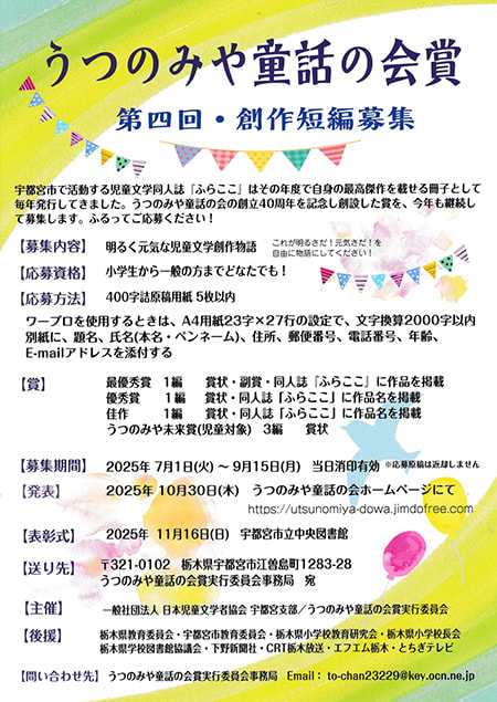 「うつのみや童話の会賞優秀賞(児童文芸2025年春号にて紹介)」