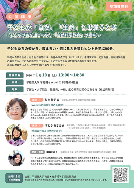 ● 公開講座「子どもが『自然』と『生命』と出逢うとき」でお話をします!
